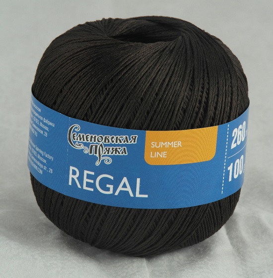 Хлопковая пряжа Регал (Regal) от фабрики «Семеновская пряжа» благодаря мерсеризации имеет характерный блеск. Нитка плотной скрутки, полотно мягкое, струящееся, гармонично смотрятся ажуры, гладь, платочная вязка. Средняя толщина делает нитку экономной в работе, а готовые изделия - комфортными в носке.
